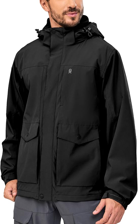 Men's Rain Jacket with Lining Detachable Hooded Waterproof Jackets Lightweight Windbreaker Outdoor Hiking